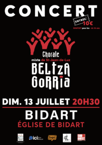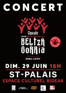 - 12 février : Beltza Gorria accueille l’ensemble vocal et instrumental KANTUNA de Ciboure au chapiteau Harriet Baita de Saint-Jean-de-Luz à 17h.