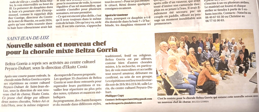 La chorale mixte luzienne Beltza Gorria a repris ses activités au centre culturel Peyuco-Duhart, sous la direction d’Ekaitz Costa.